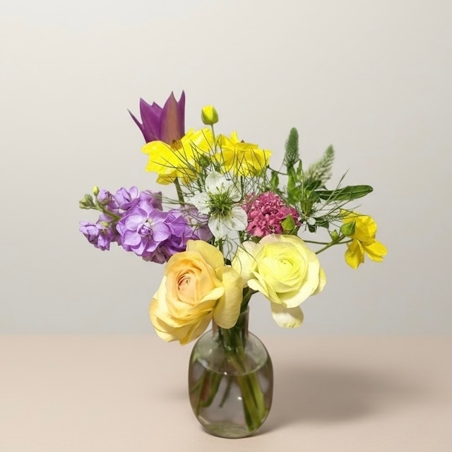 季節の花を、気軽に楽しむ。 花屋が選ぶ、やさしい彩りの定期便。 【こちらは「毎月お届け」の定期便です】 ― 日常にちょうどいい、花のある暮らし ― ミックスブロッサム Lightは、 季節の花を組み合わせてお届けする、 コンパクトな花の定期便です。 その時期の市場で出会った花の中から、 色合いやバランスを見ながら、 日常の空間にすっとなじむように束ねています。 ひとつの花と向き合うモノブロッサムとは異なり、 ミックスブロッサム Lightは、 さりげなく空間に彩りを添えることを大切にしています。 大きすぎず、小さすぎない。 毎日の暮らしに、無理なく取り入れられるボリューム感です。 ⸻ このような方におすすめです ・いろいろな種類の花を少しずつ楽しみたい方 ・はじめて花のある暮らしを取り入れたい方 ・日常の空間にさりげなく彩りを加えたい方 ⸻ お届け内容 ・内容:季節の花を組み合わせてお届け (花の種類やボリュームは週ごとに異なります) ・花材:市場で仕入れた、その時期に最も状態の良い花 ・お届け頻度:毎月(月1回) ・配送方法:メール便(郵便受けへの配達) ※ 花の種類・本数・長さは固定ではありません。 その時期の花の表情やバランスを見ながら、内容を整えています。 ⸻ ミックスブロッサム Lightについて ミックスブロッサム Lightは、 花のある暮らしを、もっと身近に楽しむための定期便です。 まずはLightから始めてみる。 少し特別な週にはStandardやPremiumに。 そんなふうに、暮らしに合わせて選んでいただけます。 ⸻ ご注意事項 ・花材の指定はできません ・天候や市場状況により内容が変更になる場合があります ・定期便はいつでもスキップ・停止が可能です
